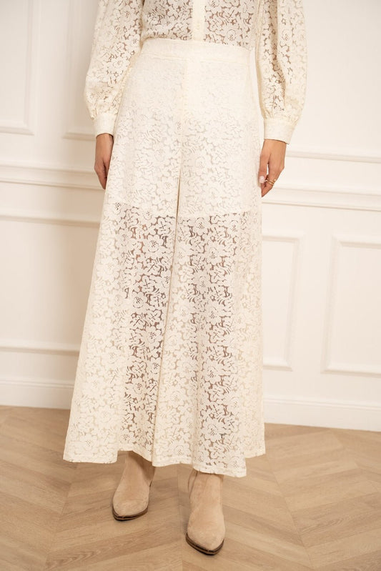 Camille Ecru Wide Lace Pants
